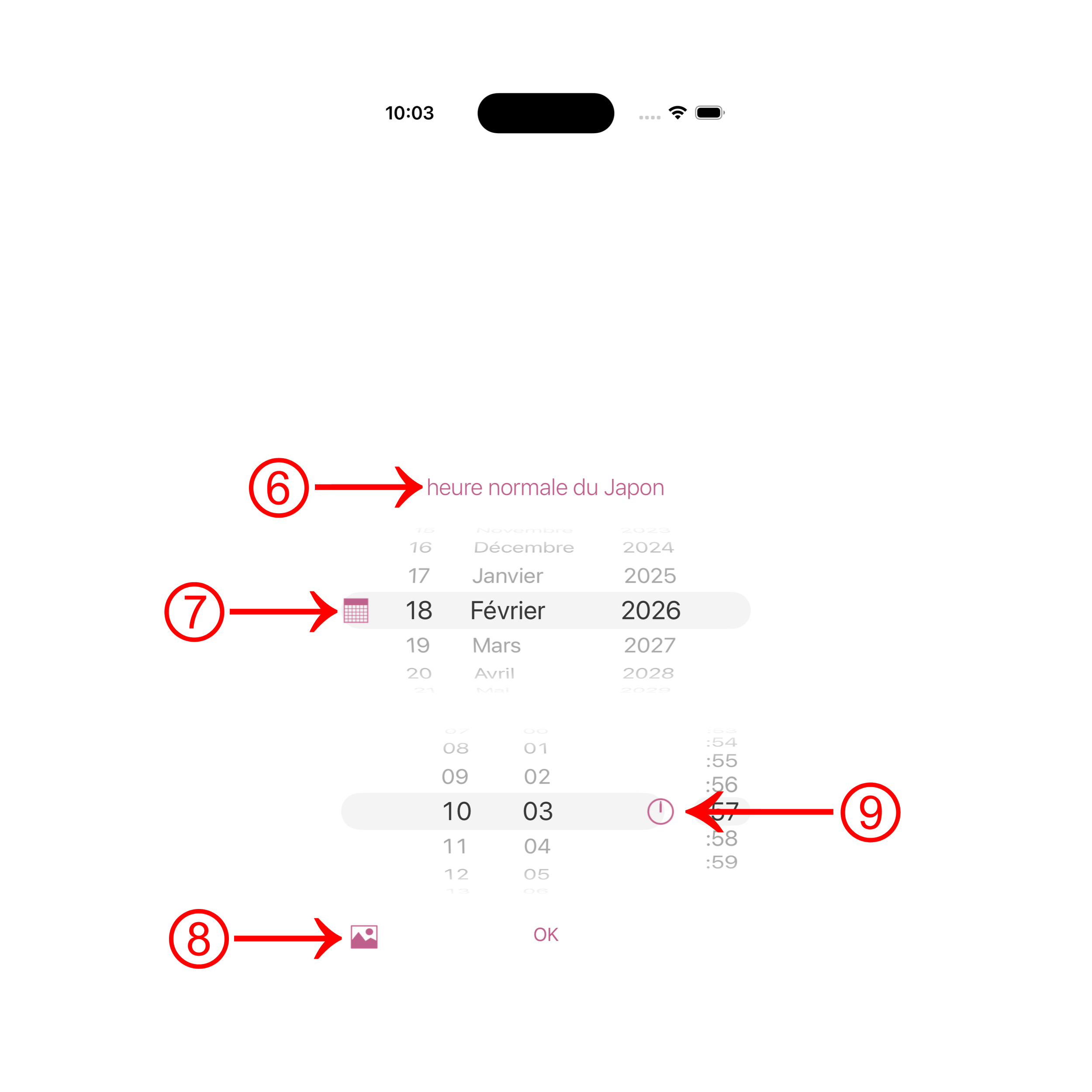 8. Pour utiliser l’horodatage d’une photo, appuyez ici.