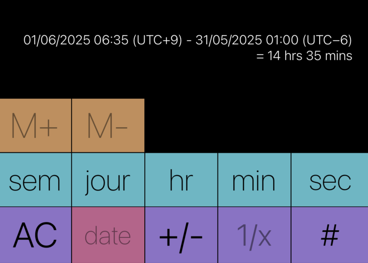 Que vous soyez globe-trotter, nomade numérique, planificateur ou simplement à la recherche d’une meilleure calculatrice, Tabi Calc est votre compagnon idéal pour gérer les dates, heures et devises.